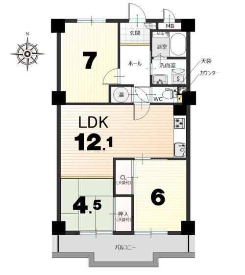 間取内容 LDK12.1畳 5階 1室  和室4.5畳 5階 1室  洋室6畳 5階 1室  洋室7畳 5階 1室
